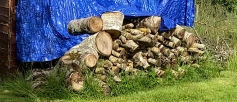 Even after all that, we still have many trees left: A huge cheery tree, which needs properly pruned finally this year; 2 pear trees, one of which bears fruit, but we will need to manage in some way to get something edible from; A cooking apple tree which also needs some reduction in branches and bears a lot of fruit, and the two remaining hazlenut trees, which need thinning also. At least know, we have the relative of a neighbour on our books who did a good job with those larger trees for us, so we can get him to help out with that and the giant laurel hedges which I failed to keep on top of.